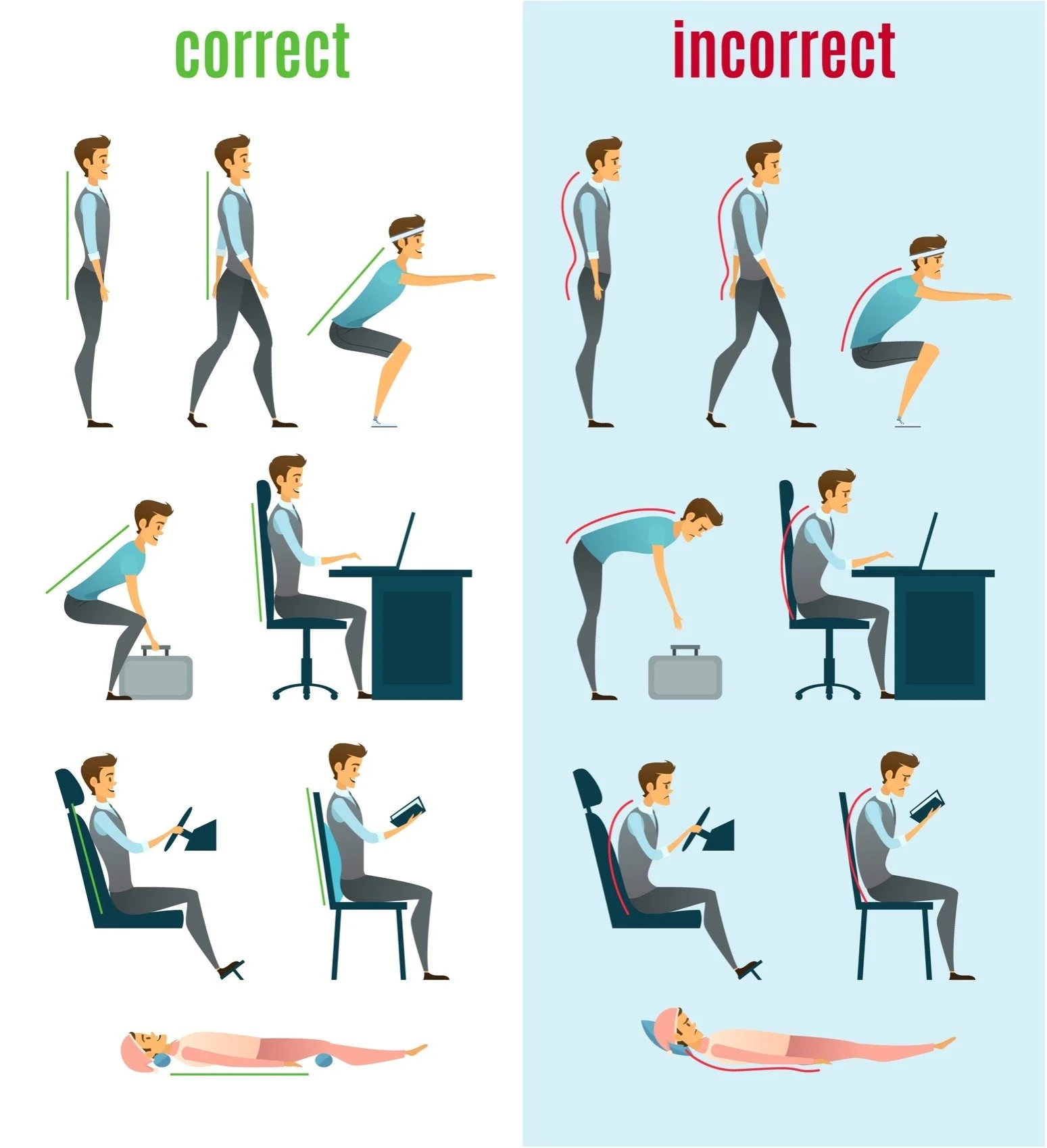 Another, often overlooked, aspect of pain are the repetitive ways we move and use our bodies and how it affects our posture. Everything our bodies do — sitting, walking, driving, sleeping, lifting/carrying, and our phone use contributes to whether our interconnected systems of bone, joint, muscle and fascia/connective tissue are staying in alignment or not. When one thing goes out of whack it can lead to a chain of imbalance, which is why awareness and prevention are so important. Something as simple as sitting on your wallet can cause issues. When you sit on your wallet, it throws your hips off kilter and creates problems in your hips and spine. The SI (sacro-iliac) joints are the two ”dimples” in your low back. They connect your sacrum (the base of your spine) to your hips. They are very prone to dysfunction when they are out of alignment. Switch to your front pocket or put into a handbag instead. Your body will thank you! Here are a few other tips for preventative posture practices: